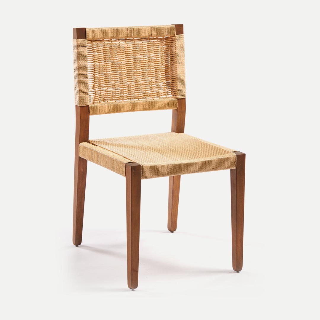 Chair in wooden beech structure. Back and seat braided in rattan rope.
