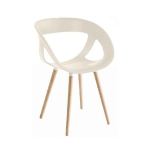 Armchair with technopolymer shell and legs from natural beech wood.