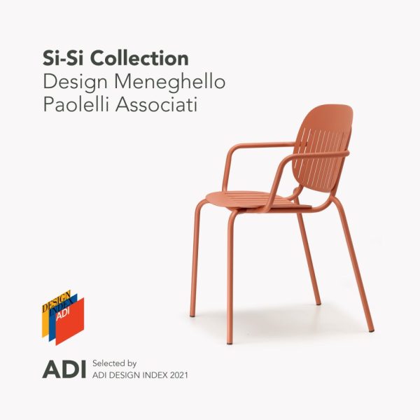 Armchair in zinc-coat metal structure with barcode-shaped details.